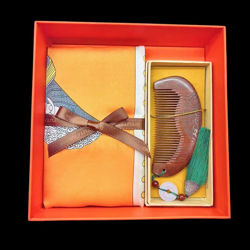 Подарочный набор SIYUTANG: шелковый шарф и гребень из сандалового дерева