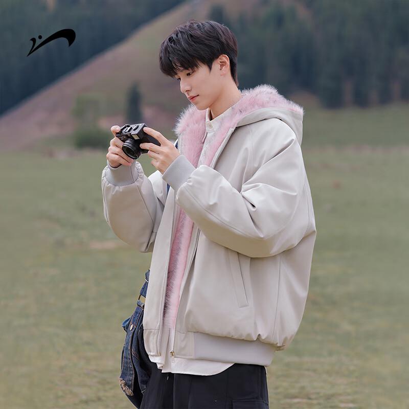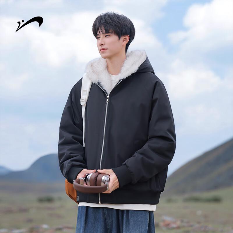 Guirenniao Men's Winter Thickened Fur-Collar Hooded Padded Jacket