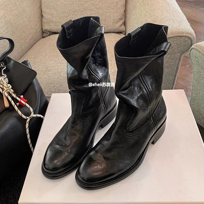 Виноградная мама тот же стиль, Берк-роуд~ Кожаные западные ботильоны с V-образным вырезом, на толстом каблуке, женские дезерты, осень-зима 2025