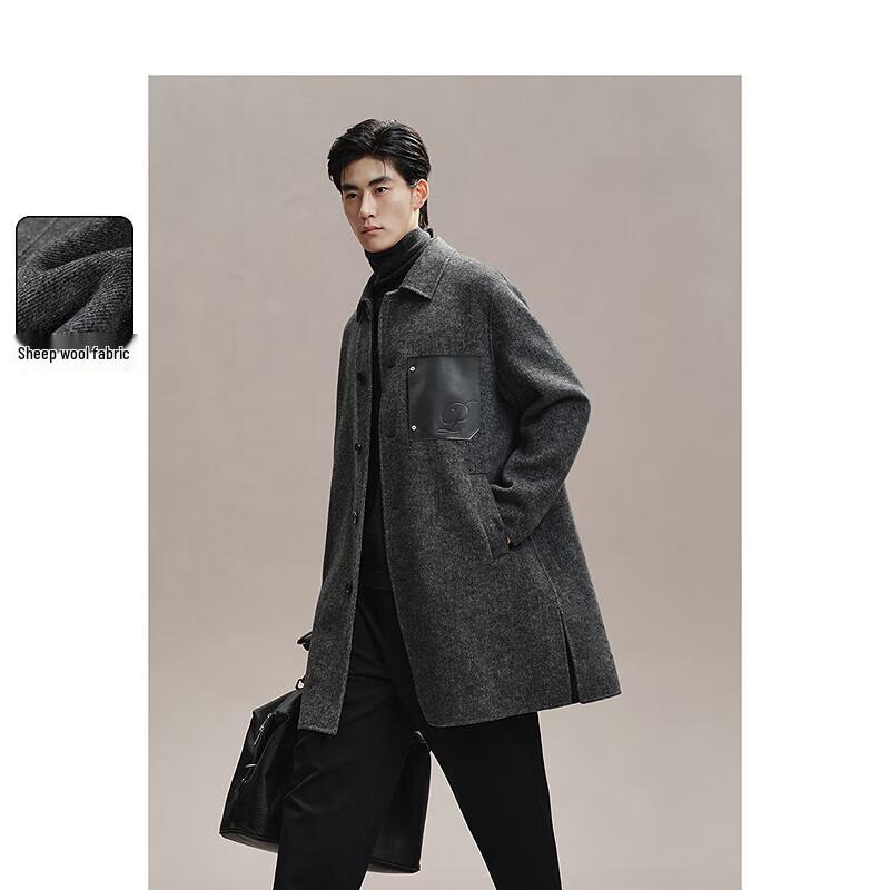 Мужское полупальто PEACEBIRD средней длины свободного кроя из шерстяной смеси для зимы