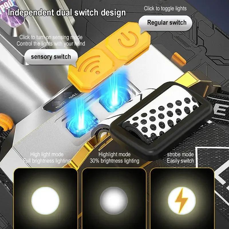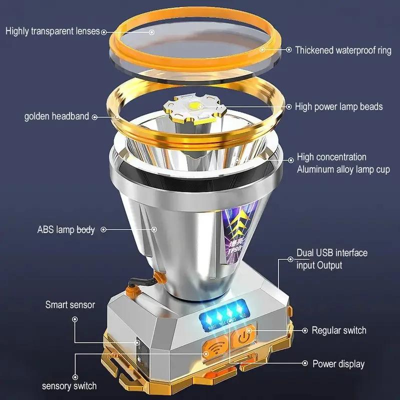Светодиодный налобный фонарь Источник света Перезаряжаемый Кемпинговый налобный фонарь Охотничий налобный фонарь Фонарик Рыбацкий налобный фонарь Индикатор заряда
