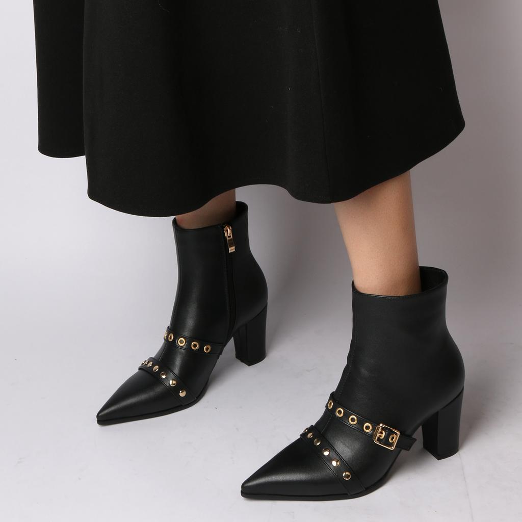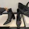 FOREADA Женские ботильоны с острым носком, на массивном высоком каблуке, с пряжкой, заклепками и молнией, лаконичные короткие ботинки, модная женская обувь, осень-зима 46