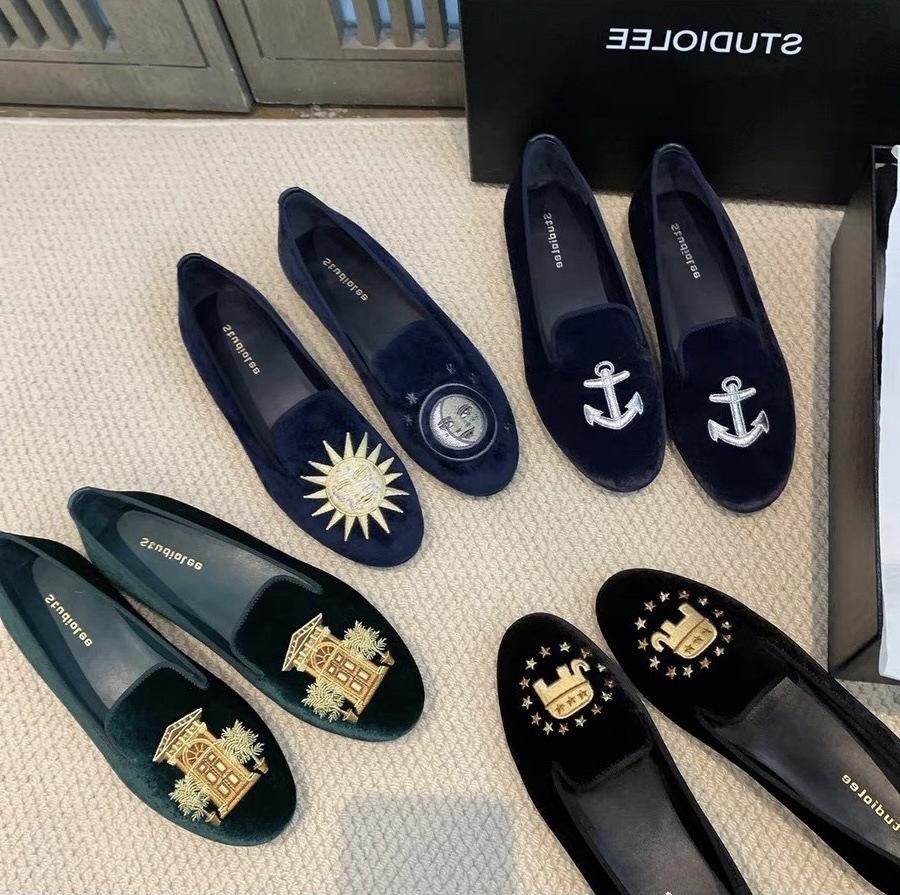 Овчинная версия виноградной матери, та же французская вышивка, бархатные балетки на одной педали, женские ленивые кожаные туфли на плоской подошве