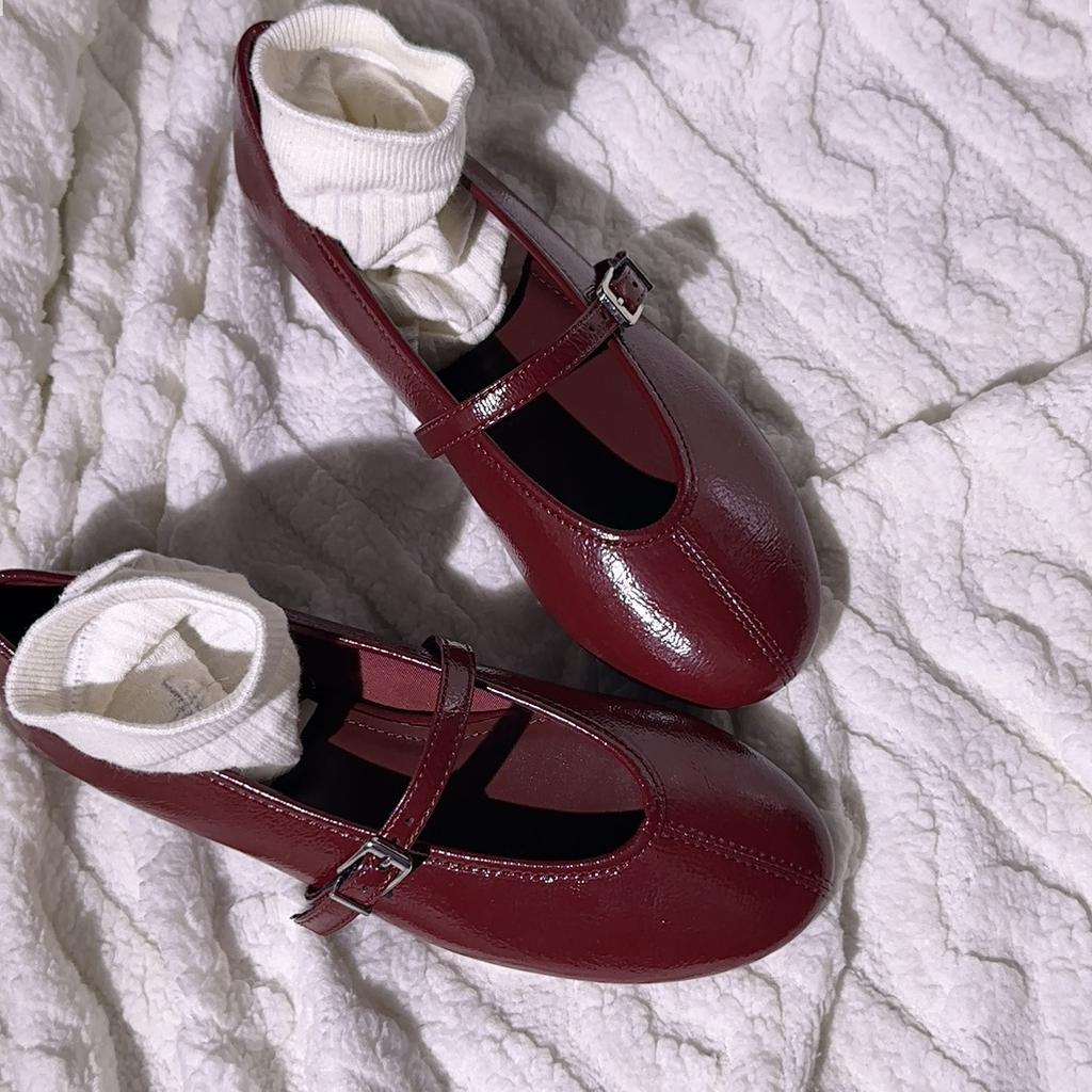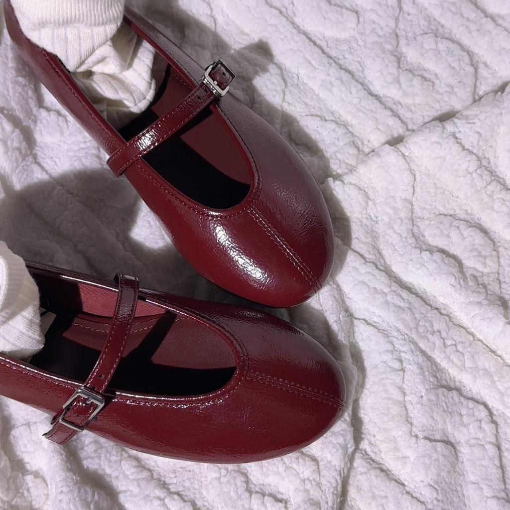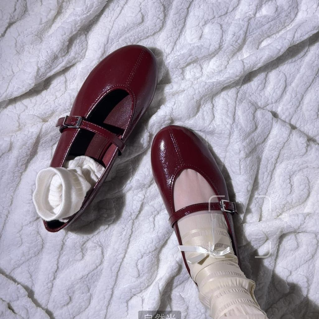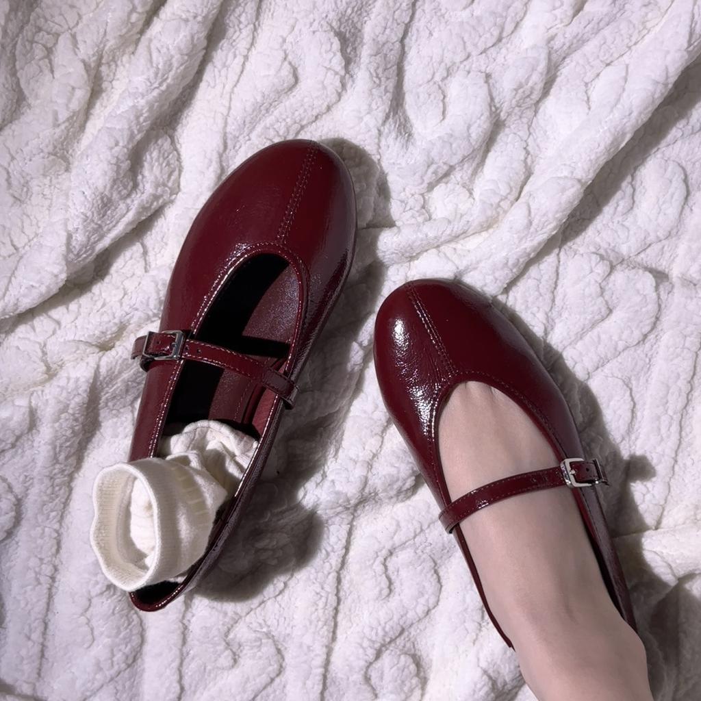 Версия из овчины za ретро круглая головка однословная пряжка с маленькими красными туфлями женские балетки на плоской подошве универсальные одинарные туфли Мэри Джейн