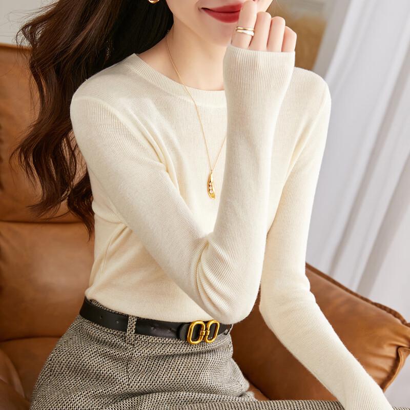 Women's Elegant Slim-Fit Wool Blend Long Sleeve Base Layer Sweater