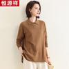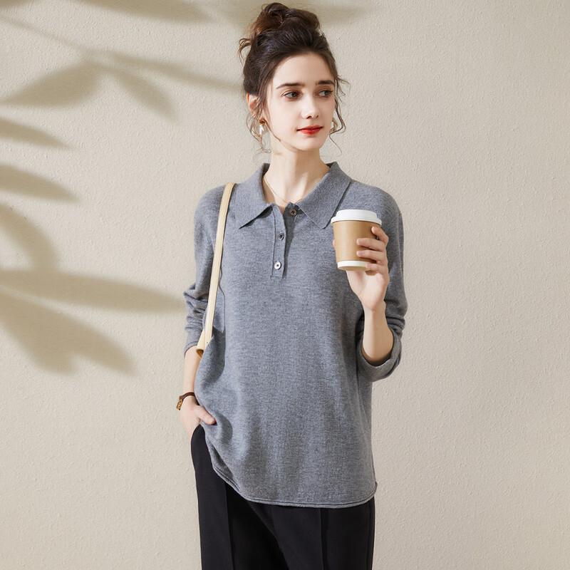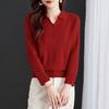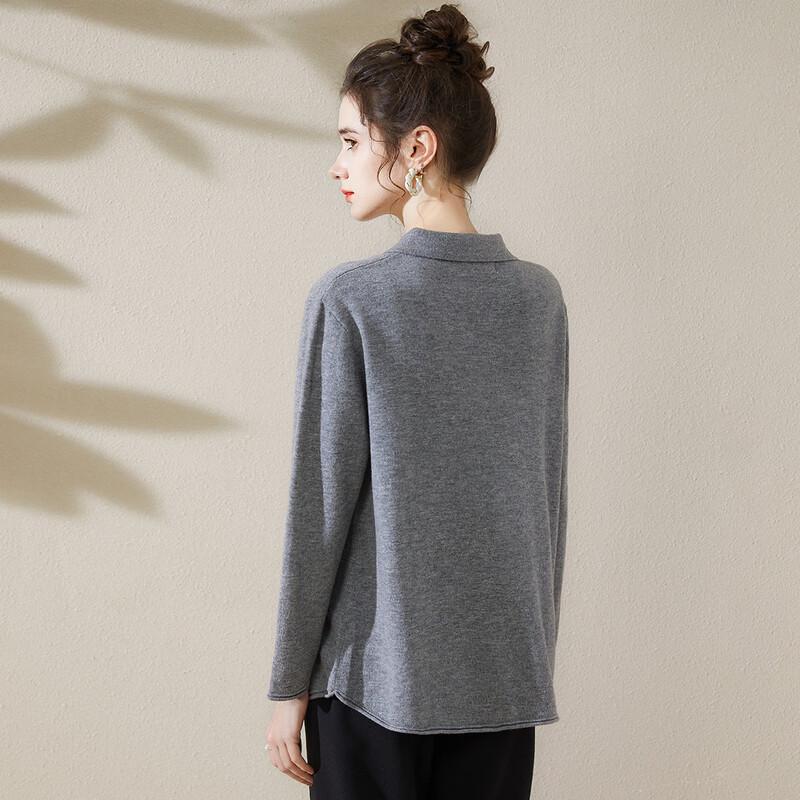 TUHUANG Women's Pure Wool Knitted Polo Collar Sweater