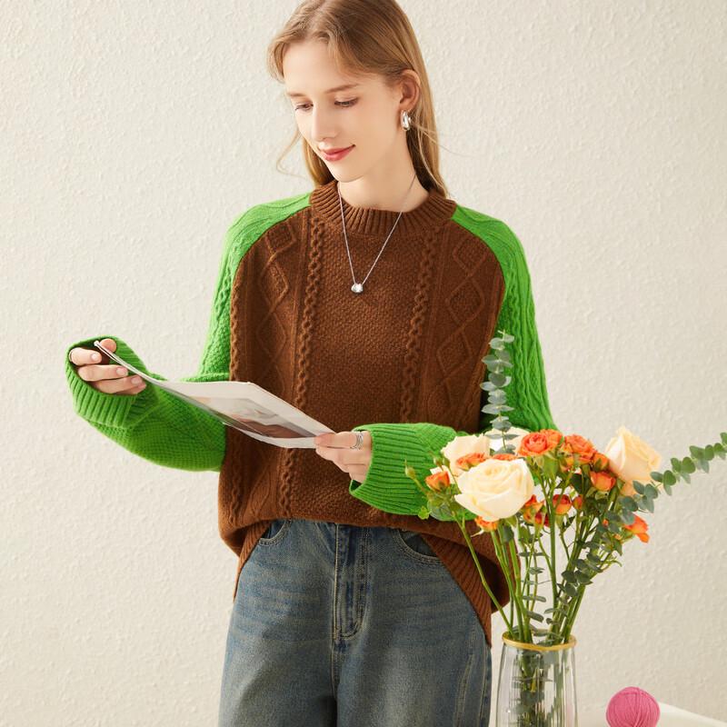 TUHUANG Women's Colorblock Twisted Knit Wool Sweater