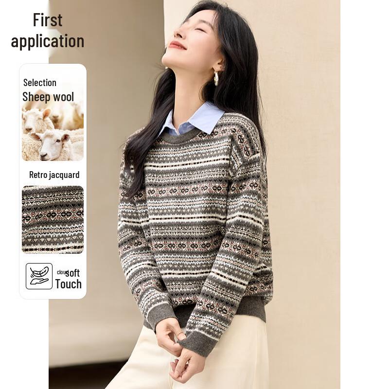 Women's Retro Fair Isle Jacquard Wool Blend Sweater
