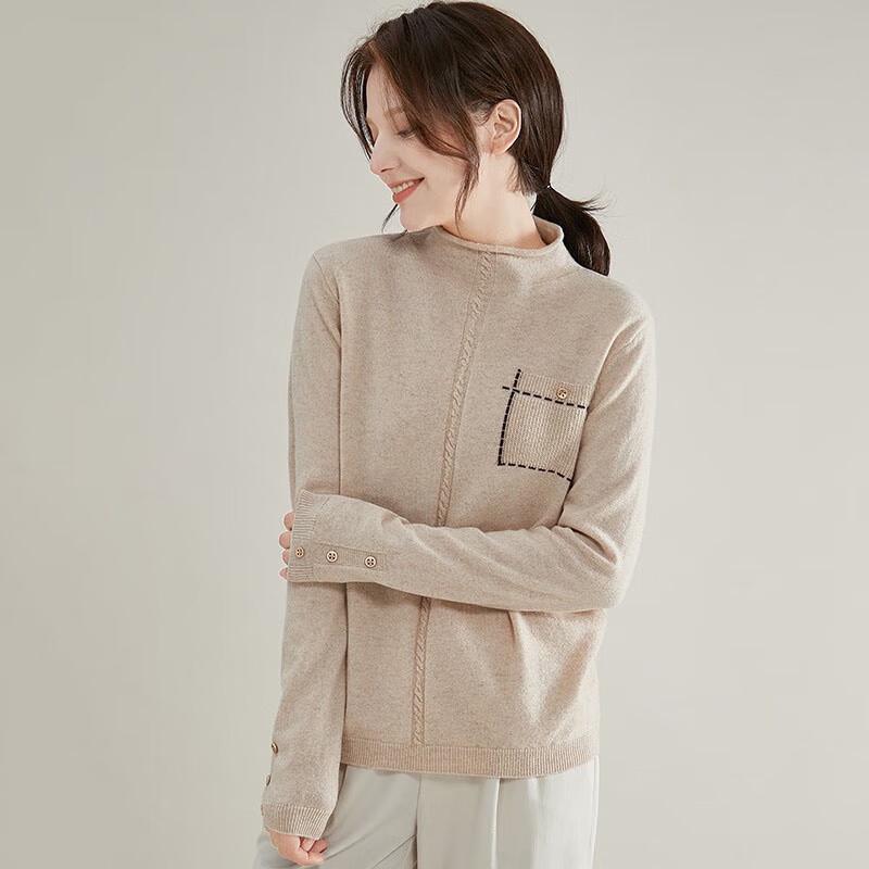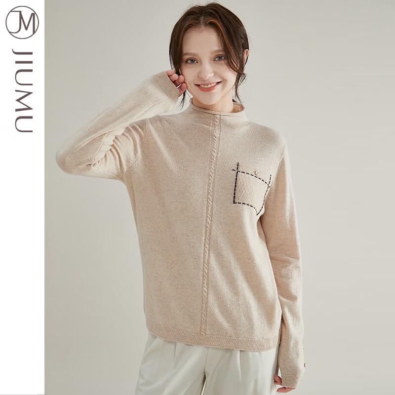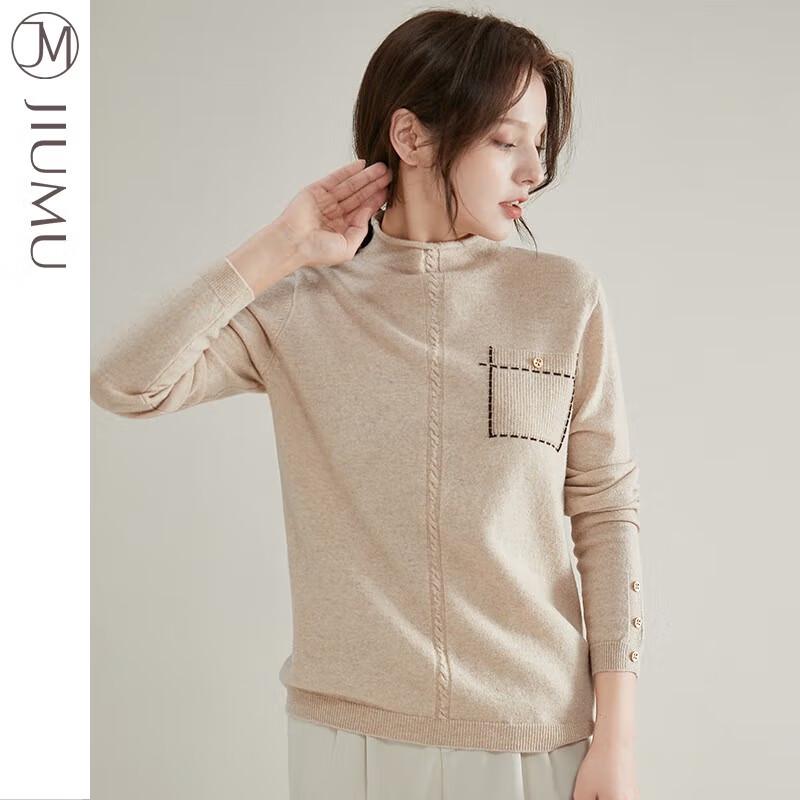 JIUMU Women's Half-High Collar Pure Wool Sweater