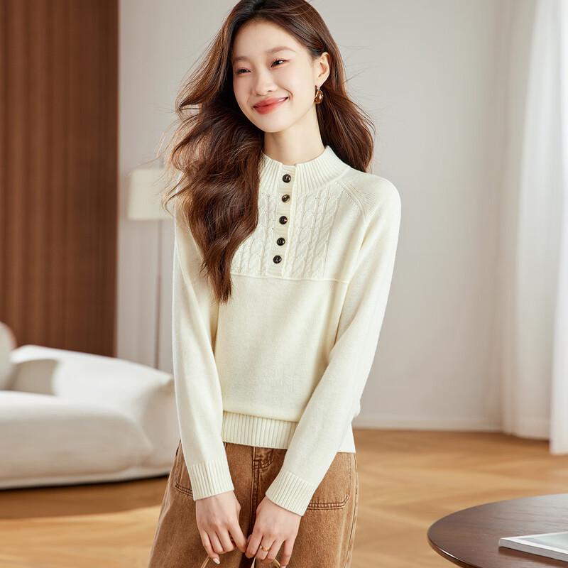Srcr Women's 100% Wool Semi-High Collar Knit Sweater