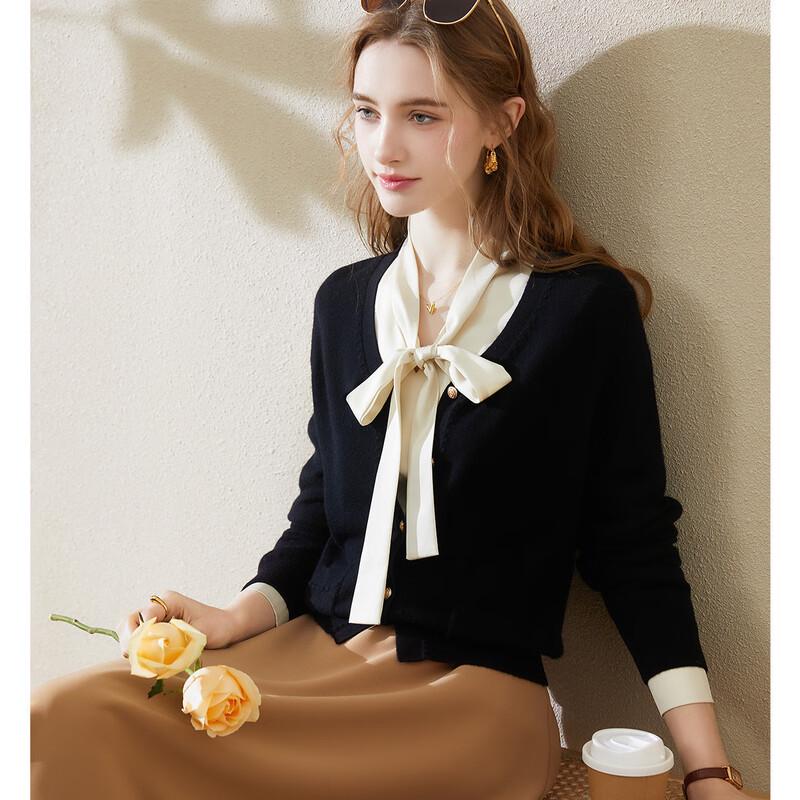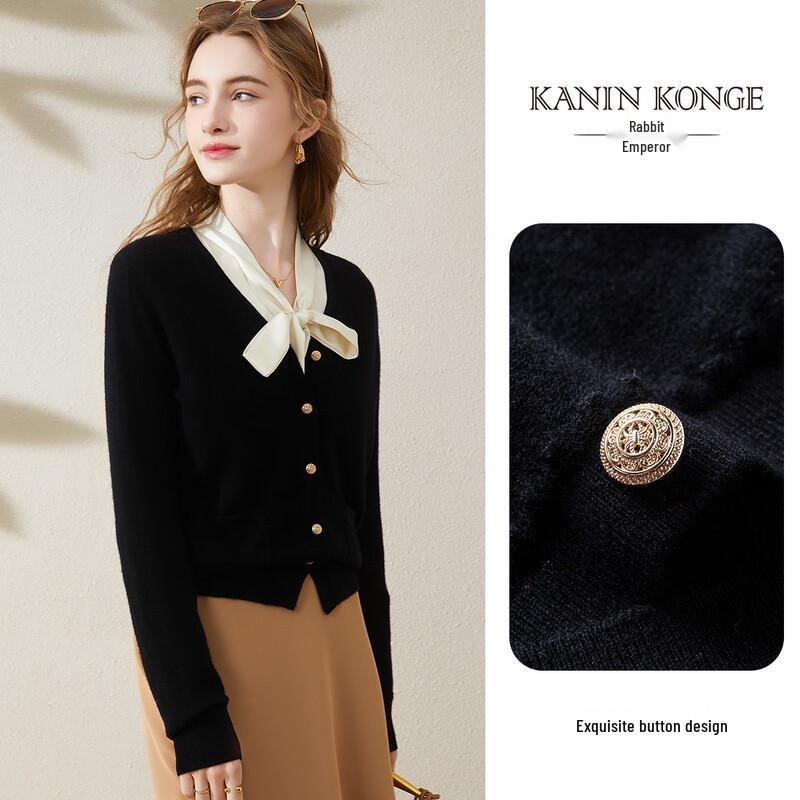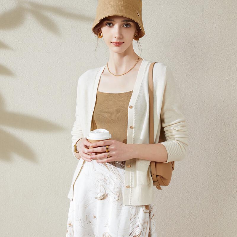 TUHUANG Women's 100% Pure Wool V-Neck Double Pocket Cardigan