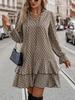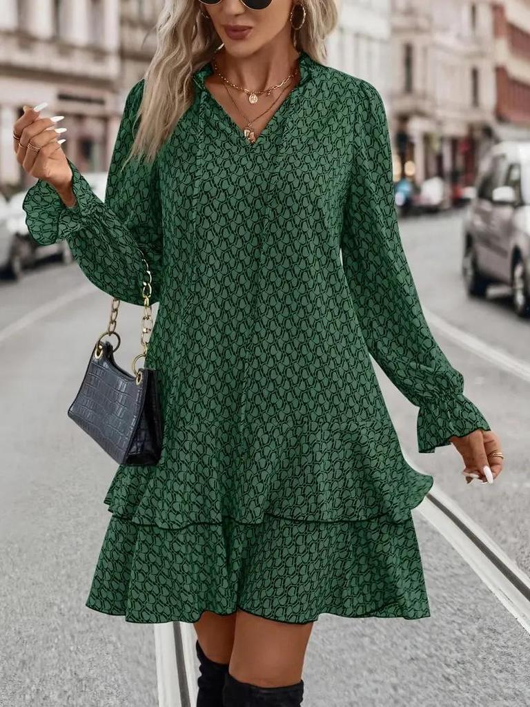 Элегантное женское платье с V-образным вырезом, принтом, расклешенными рукавами и оборками