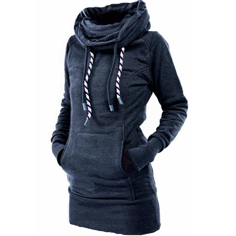 Пуловер с высоким воротником, однотонное толстое худи, теплая туника, толстовка, вышитая звезда, длинное платье-худи для женщин