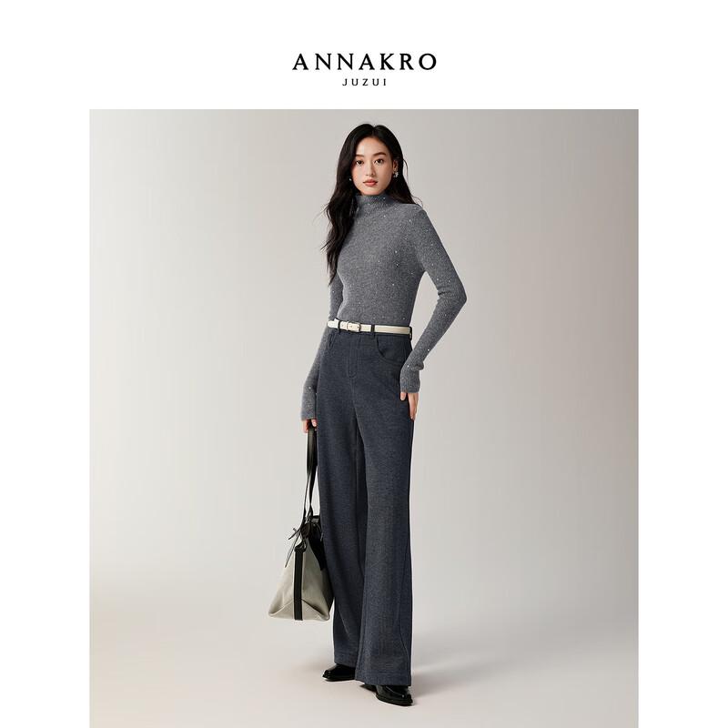 Jiuzi Annacole Women's Herringbone Knit Straight-Leg Trousers