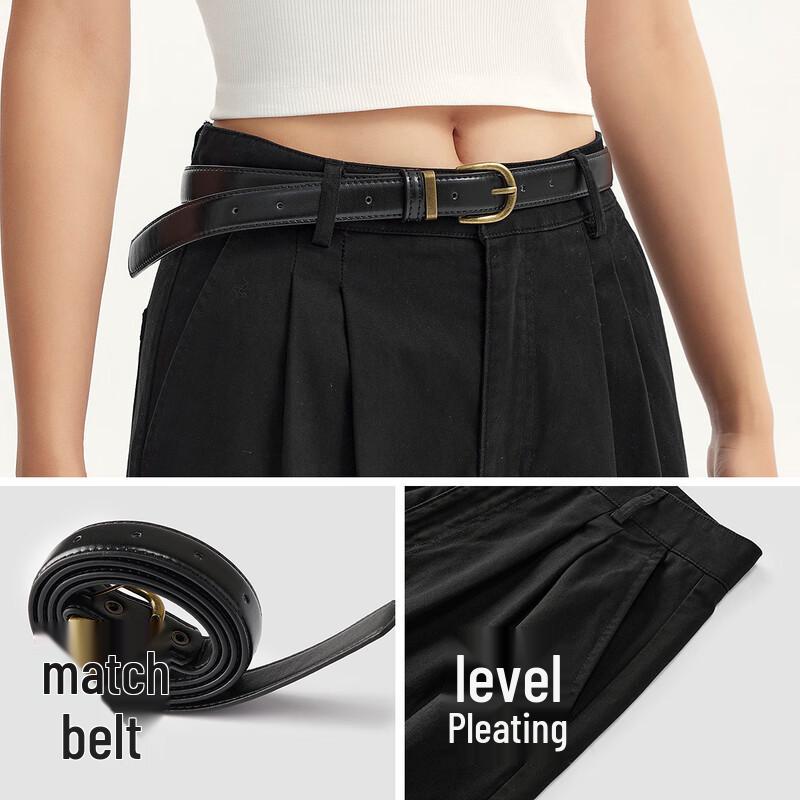 Semir Women's Pure Cotton Pleated Wide-Leg Pants with Belt