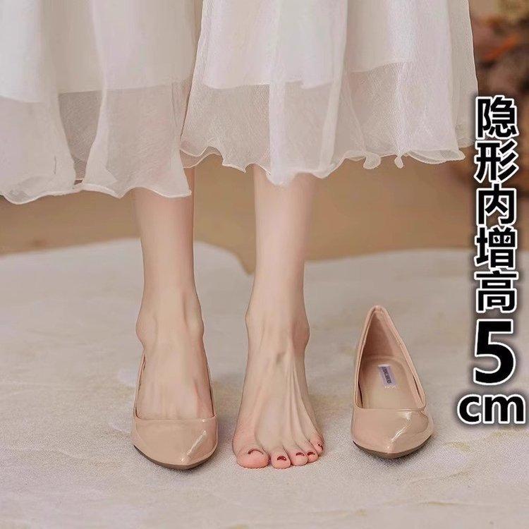 French sexy pointed head light mouth patent leather high heels middle heel one pedal 2025 new inner height increase ladyshoes single shoes women