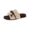 [Ushilai] Новинка осени 2025 года женские тапочки из натуральной шерсти ягненка, однополосные, универсальные, на плоской подошве, нескользящие, для улицы