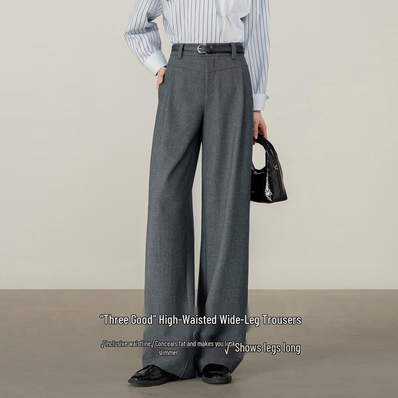 Women's Wool Blend High-Waist Pleated Wide-Leg Trousers