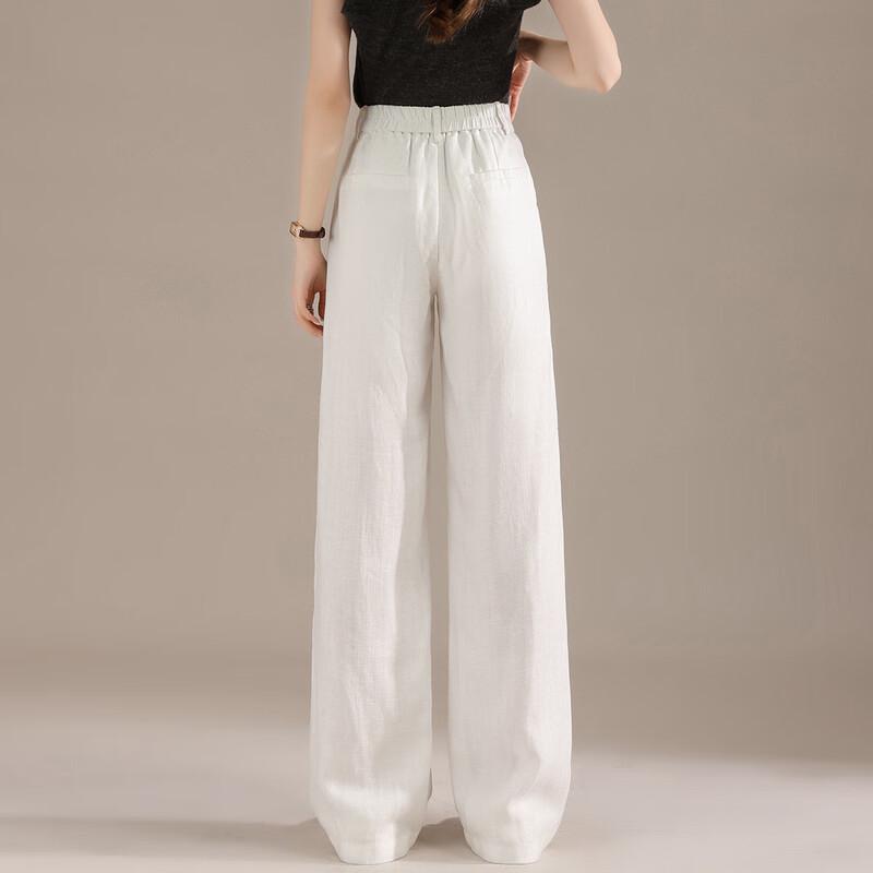 RAIN.CUN Женские белые брюки с высокой талией из смесового льна с широкими штанинами