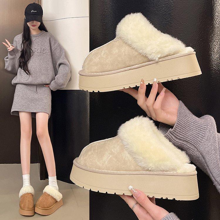 2025 новые зимние сапоги женские зимние меховые цельнокроеные шерстяные с вельветовой отделкой голенища на толстой подошве теплые верхняя одежда сумка голова полусапожки