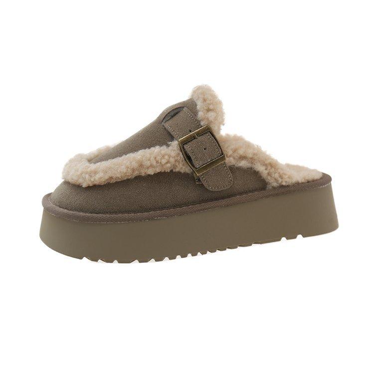 Полусапожки с толстой подошвой и меховой отделкой, женская уличная обувь, осень-зима 2025, новые бархатные утолщенные зимние сапоги, хлопковые тапочки