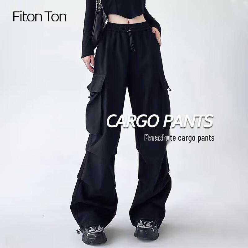 FitonTon Women's High-Waist Parachute Cargo Pants