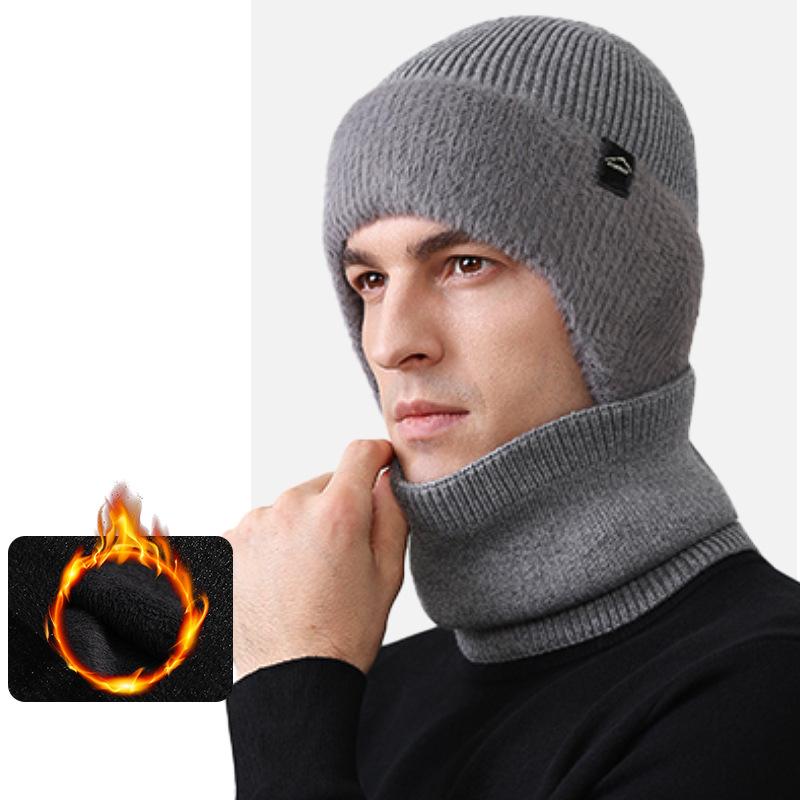 Зимняя защита ушей и лица Бархатная вязаная шапка-шарф Комплект Мужская зимняя уличная теплая шапка Набор из двух предметов