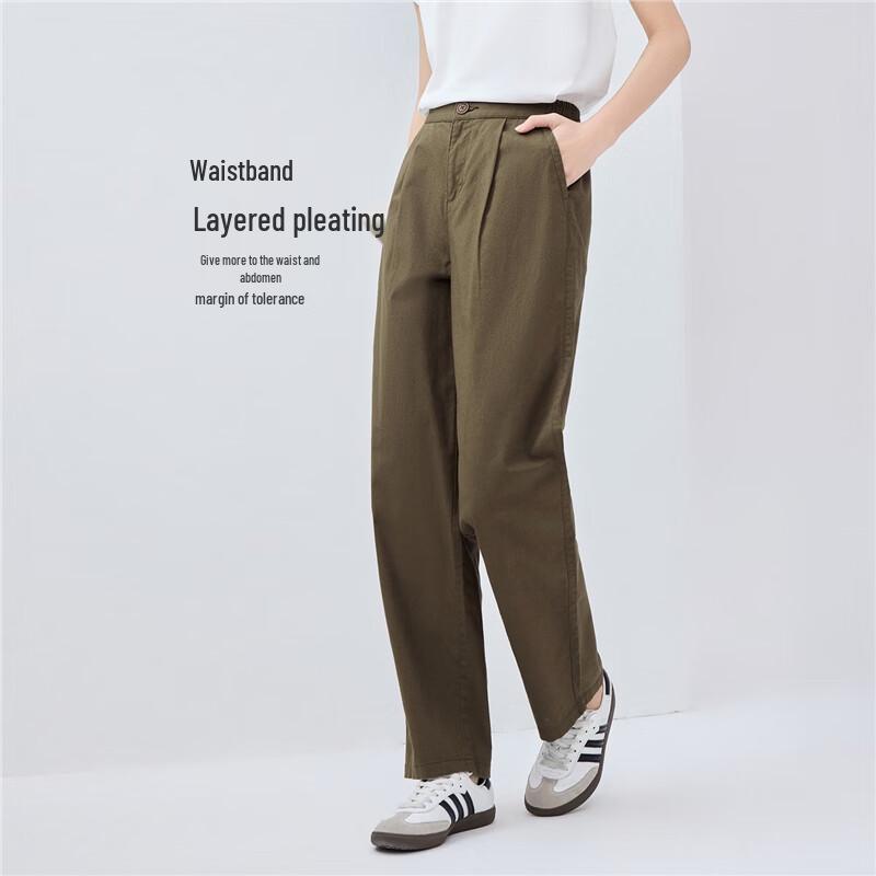 Giordano Women's Cotton Linen Pleated Casual Trousers