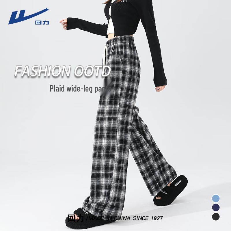 Warrior Women's High-Waist Plaid Wide-Leg Casual Pants