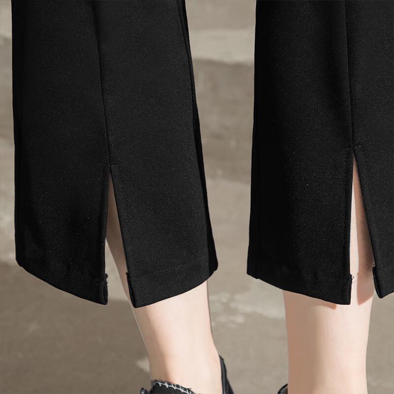 Женские укороченные расклешенные брюки с разрезом и высокой посадкой