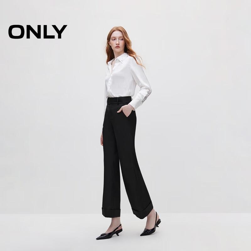 Only Женские расклешенные брюки с высокой посадкой из смесовой шерсти