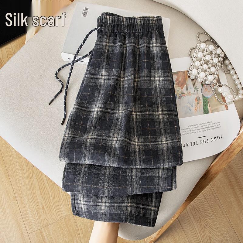 Sibaishe Women's Plaid Elastic Waist Drawstring Casual Pants