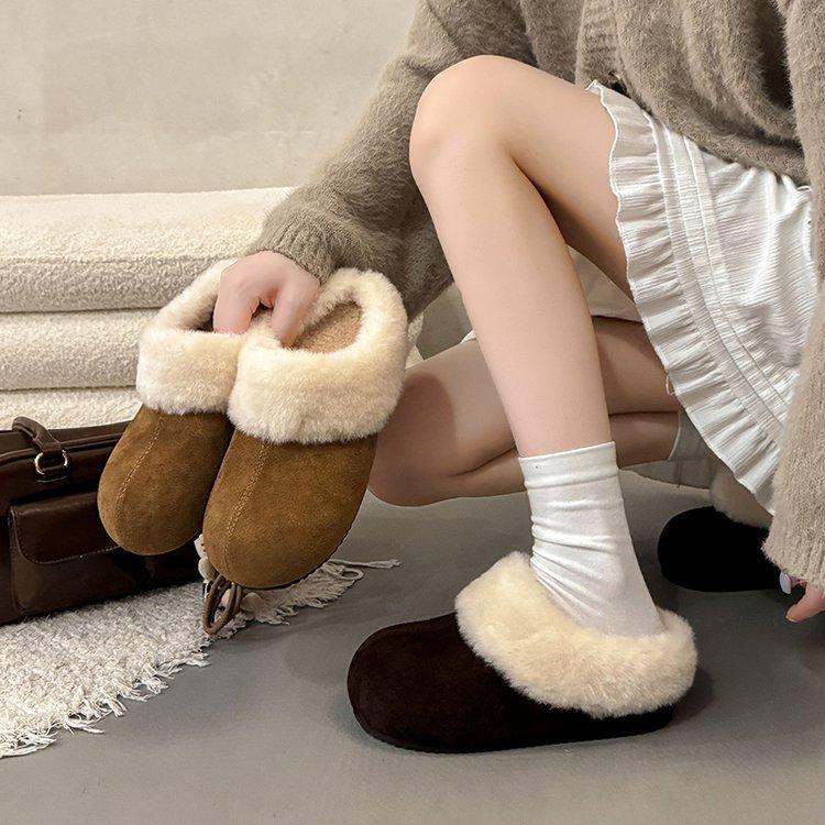 Пушистые тапочки на толстой подошве с закрытым носком для женщин, новая зимняя обувь 2025 года, интегрированные меховые сапоги для снега, хлопковые тапочки с набивкой