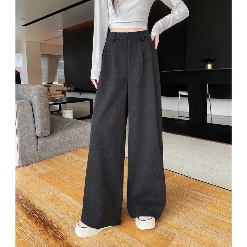 TonLion Women's 2025 Winter Loose Vertical Stripe Wool Blend Trousers
