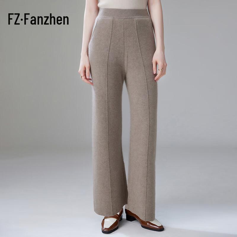 Fanzhen Women's High-Waist Wool Blend Wide-Leg Trousers