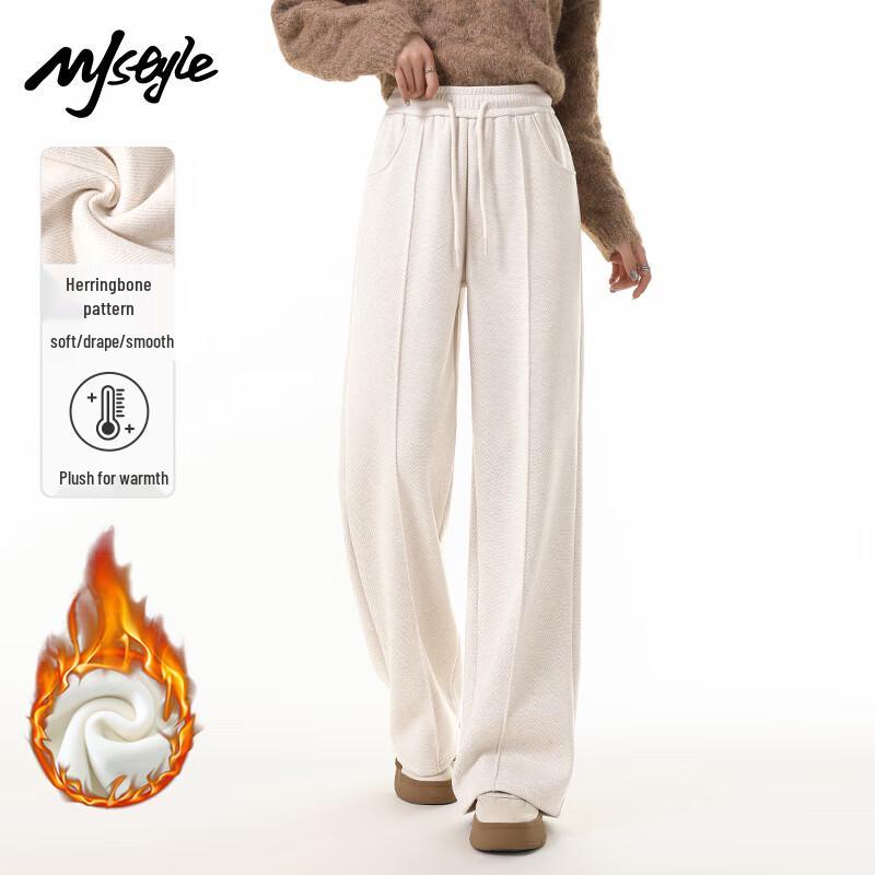 Женские брюки прямого кроя в елочку на флисовой подкладке MJ STYLE