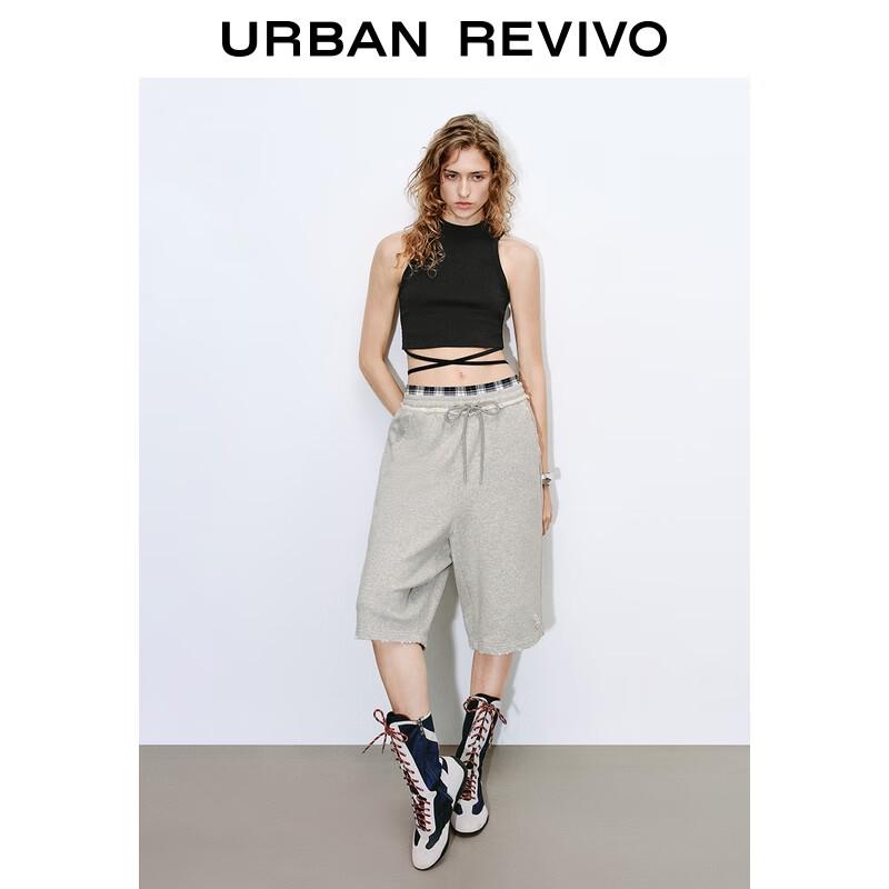 UR 2025 Летние женские укороченные брюки широкого кроя на кулиске в клетку пэчворк