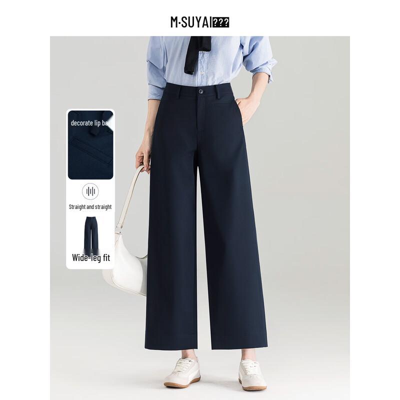 Mengshuya 2025 Осень Темно-синие Укороченные Брюки с Завышенной Талией и Широкими Штанинами