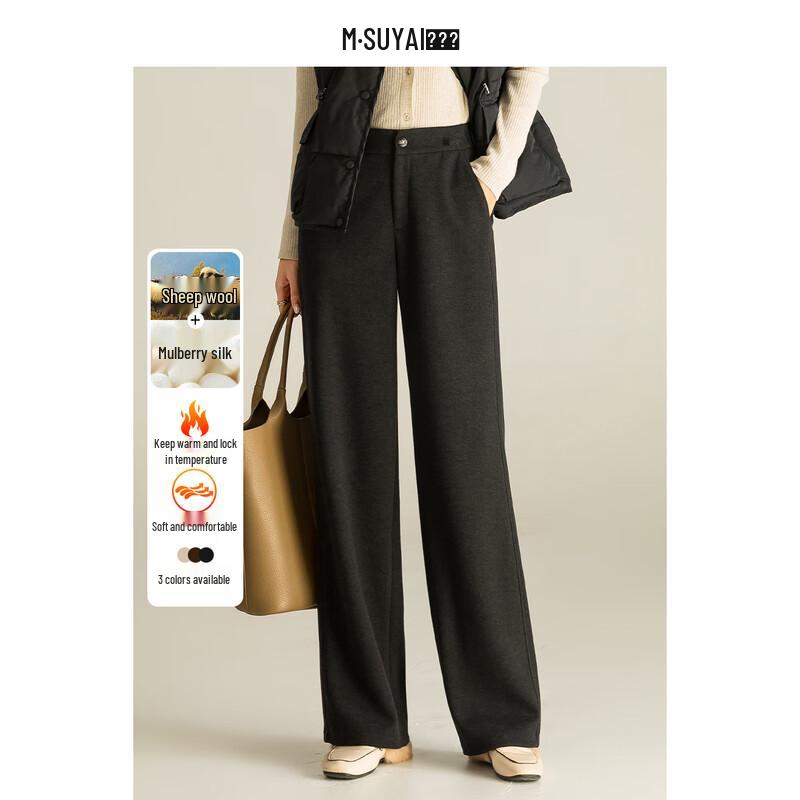 Mengshuya Silk Wool Blend High-Waist Straight Leg Pants