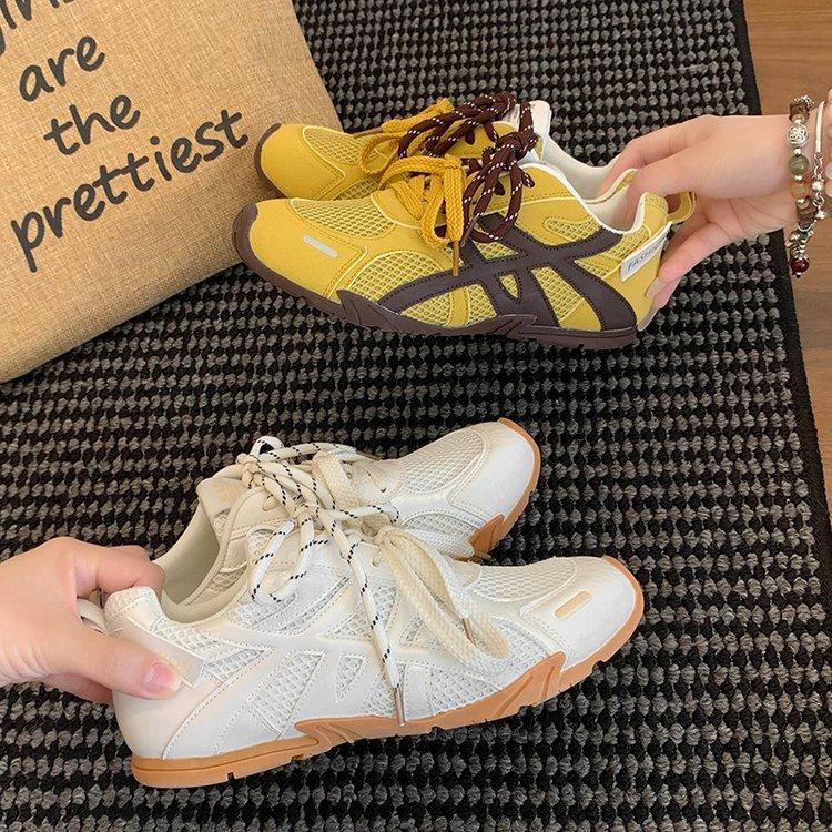 Кожаные желтые туфли Dexun женские 2025 новая летняя сетчатая дышащая тонкая спортивная обувь А обувь Гань кеды — купить товар онлайн с бесплатной доставкой по всему миру!