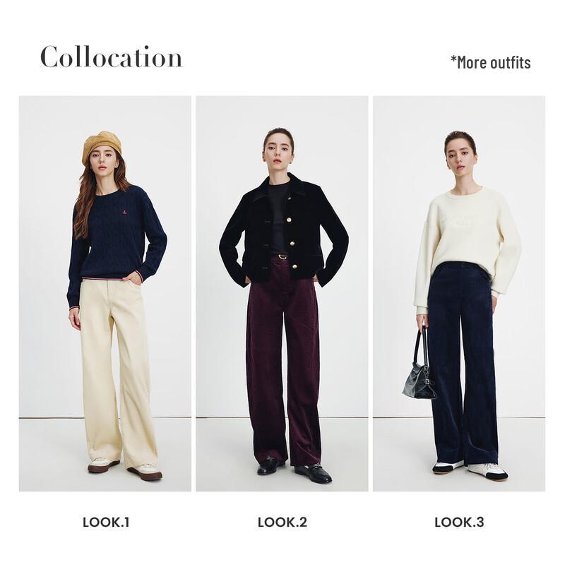 Navigare Women's 100% Cotton Corduroy Wide-Leg Casual Pants 2332075512