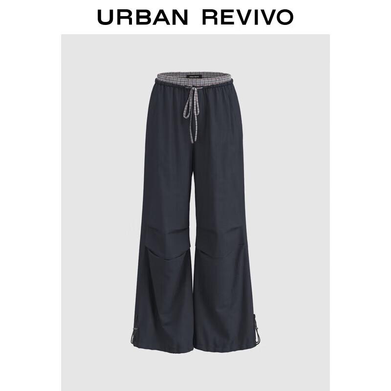 UR Women's Casual Plaid Patchwork Drawstring Wide-Leg Pants
