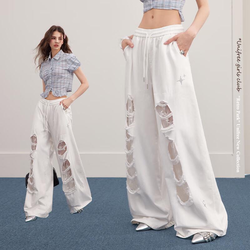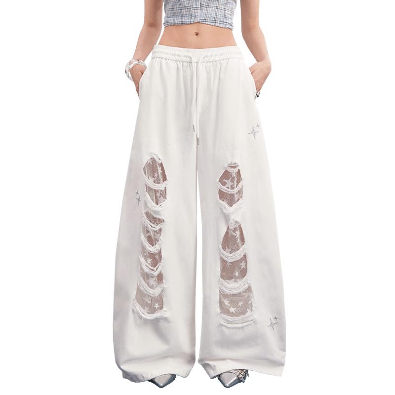unifree Белые широкие спортивные штаны с кружевной вставкой в стиле гранж