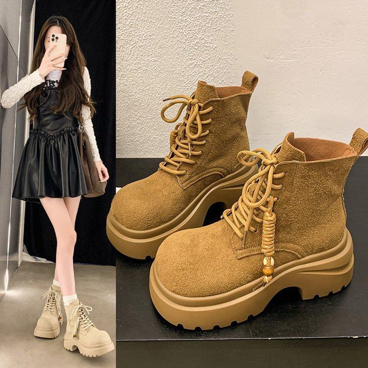 Женские ботинки Мартина 2025 осень новые короткие ботинки ботинки прерий ковбойские ботинки вестерн маленькие на толстой подошве большие желтые ботинки