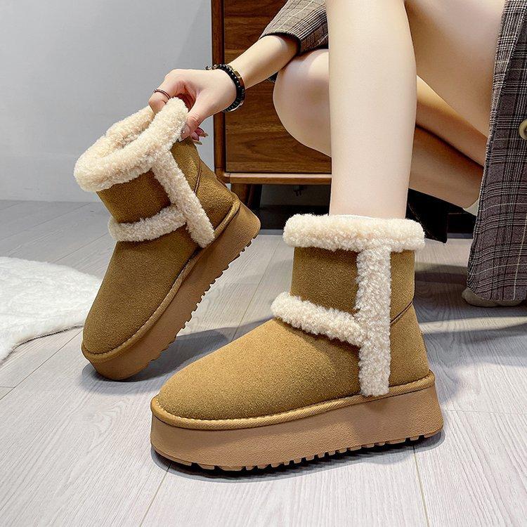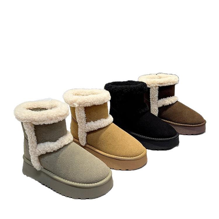 Версия из коровьей кожи! Женские зимние ботинки на толстой подошве 2025 новые пушистые короткие ботинки с напуском и утолщенные универсальные теплые короткие зимние хлопковые ботинки