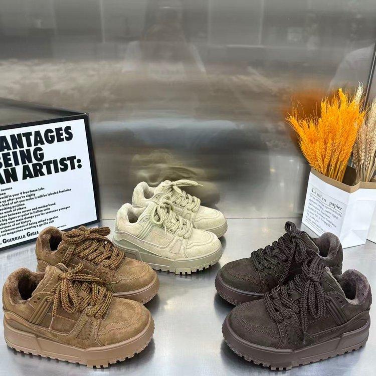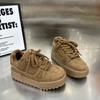 Европейская станция 2025 зима новая кожа бархат толстая подошва увеличивающие рост туфли-маффины универсальные повседневные кеды обувь для хлеба женская
