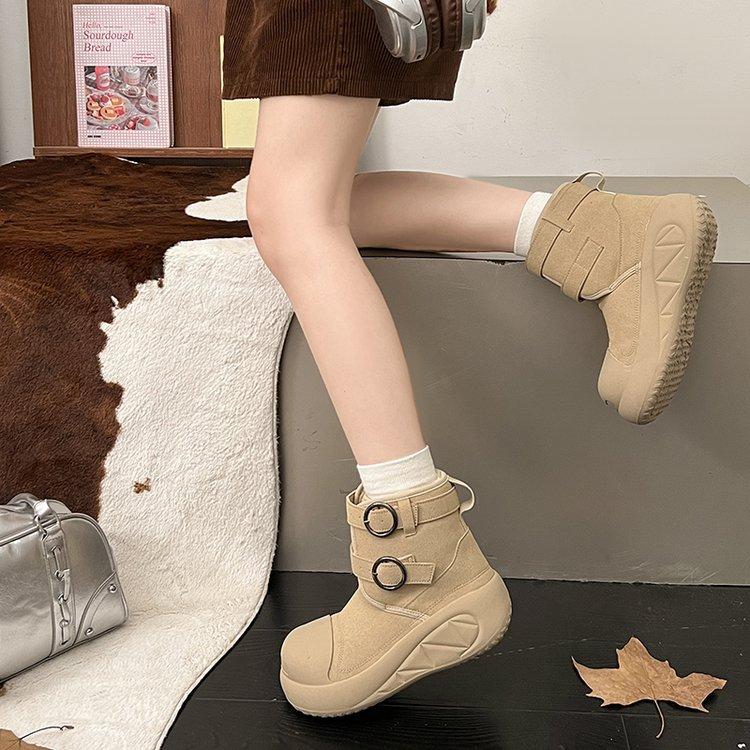 Женские зимние ботинки на толстой подошве, увеличивающие рост, осень 2025, новые, уродливо-милые короткие ботинки с большой головой, бархатные теплые маленькие хлопковые ботинки