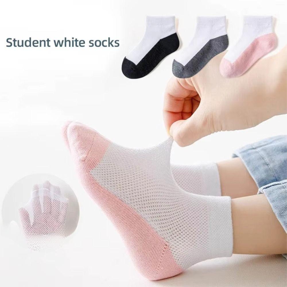 5 пар двухцветных детских носков для мальчиков, противоскользящие, дышащие, студенческие белые носки, белые носки