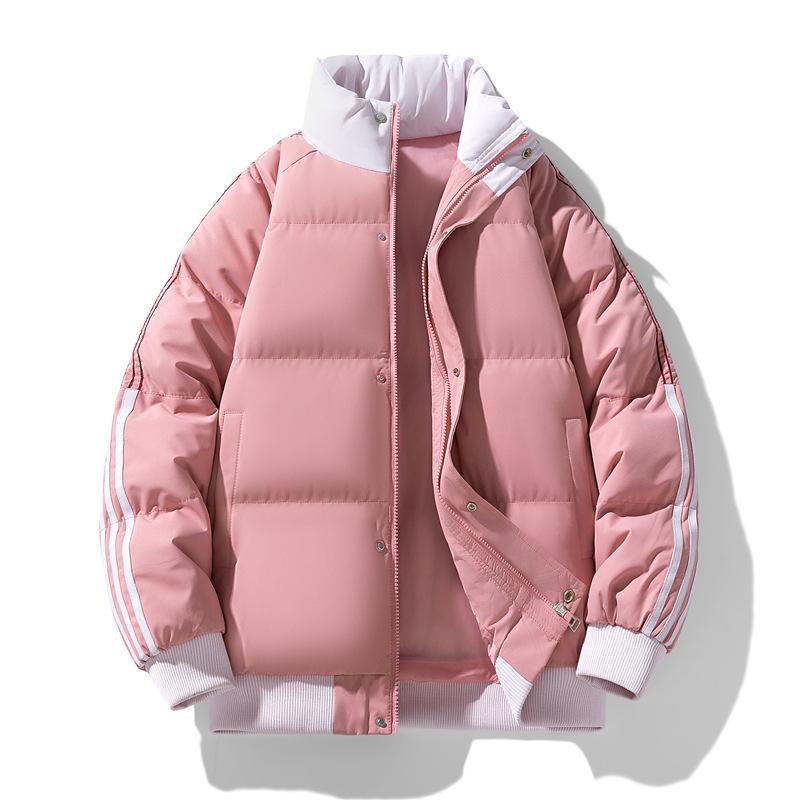 Хлопковая куртка в полоску со стойкой воротником для мужчин и женщин, зимняя, новая, утолщенная, высококачественная хлопковая одежда, свободного кроя, парная модель, хлопковая куртка для мужчин
