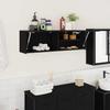 Armoire murale de salle de bain, armoire en bois à trois portes avec porte-serviettes et armoire à pharmacie vitrée, noire